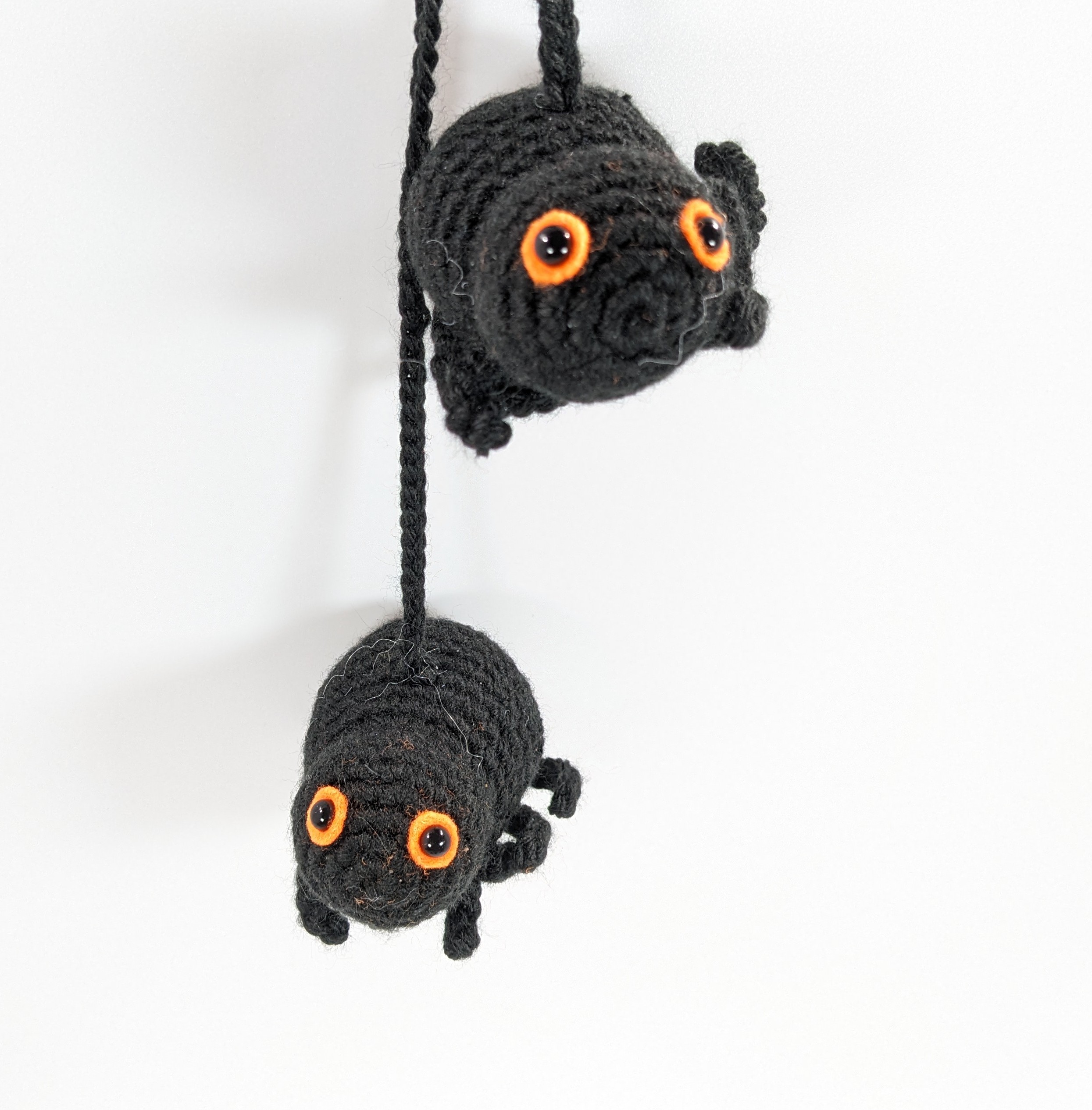 Also this cute Hanging Spiders Car Decor is crochet with acrylic yarn and filled with a small amount of fiberfill. His mouth and eyes are made of felt and glued on.