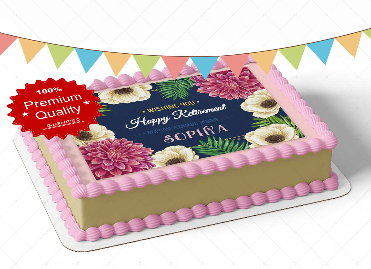 Happy Retirement Flowers Edible Image Themed Edible Birthday Party Cake Topper Sheet Edible Sticker Decal