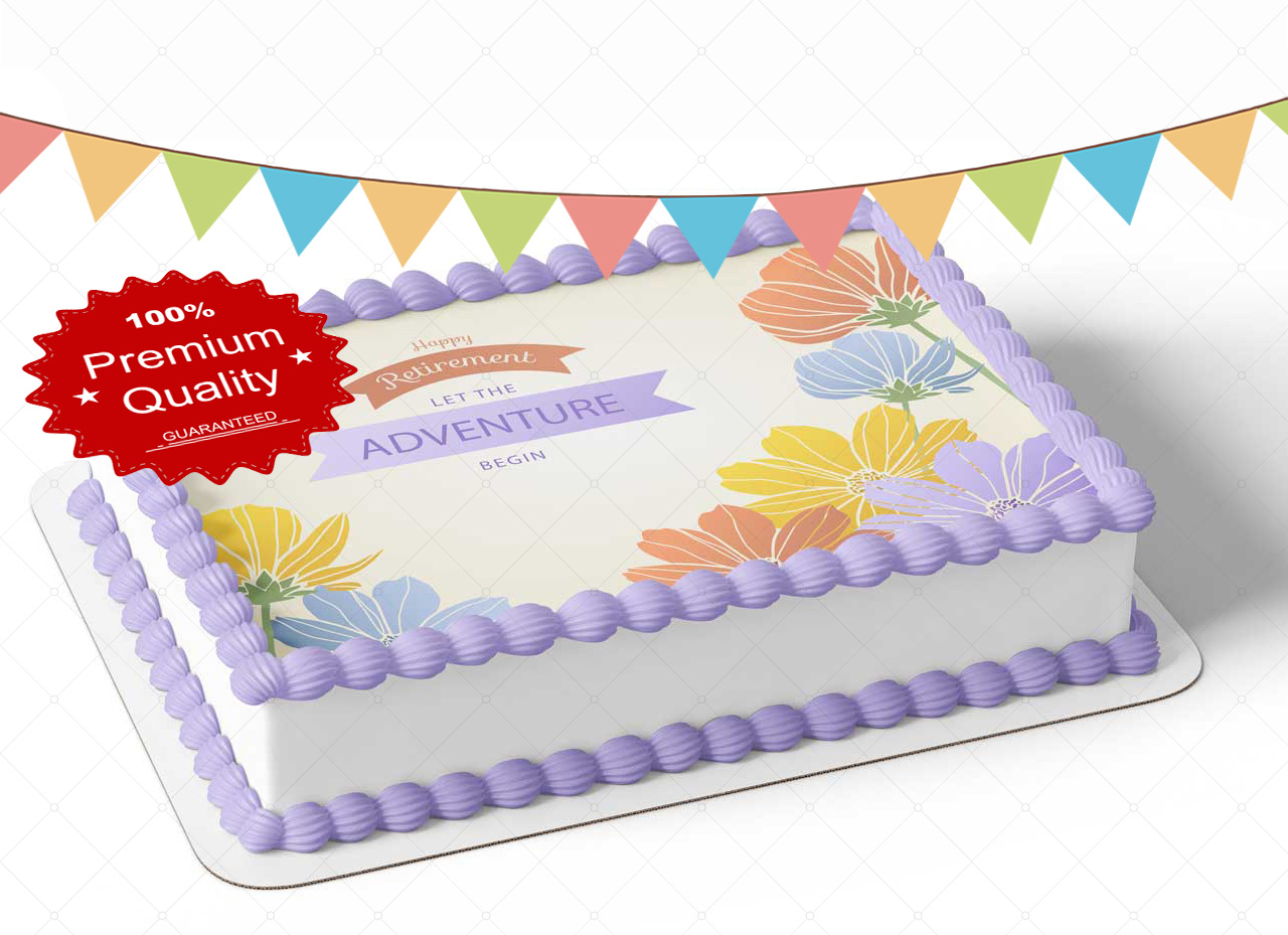 Happy Retirement Let the Adventure Begin Edible Image Themed Edible Birthday Party Cake Topper Sheet Edible Sticker Decal