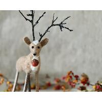 Meet Aspen, a one-of-a-kind needle felted deer sculpture crafted to add warmth and natural elegance to your fall and Thanksgiving celebrations. This heirloom-quality centerpiece showcases the artistry of traditional needle felting, created with soft beige wool that evokes the gentle, cozy warmth of autumn's embrace.