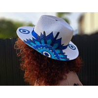 The evil eye and mandala decoration adds a unique touch to the hat, making it a limited edition piece.
