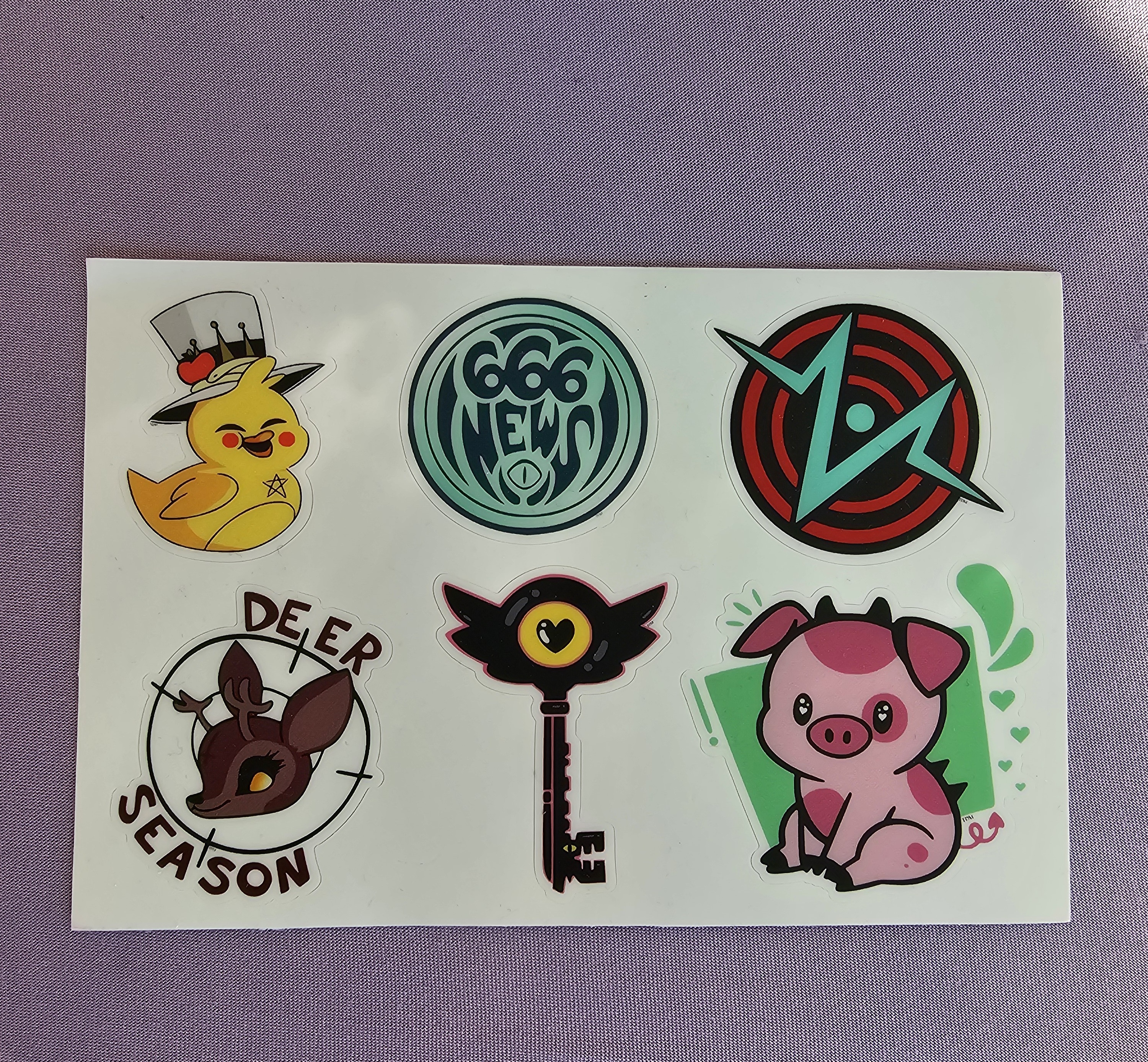 Our Hazbin Hotel–inspired 6"x4" Sticker Sheet is here to bless your water bottle, laptop, or journal with sinfully adorable energy.