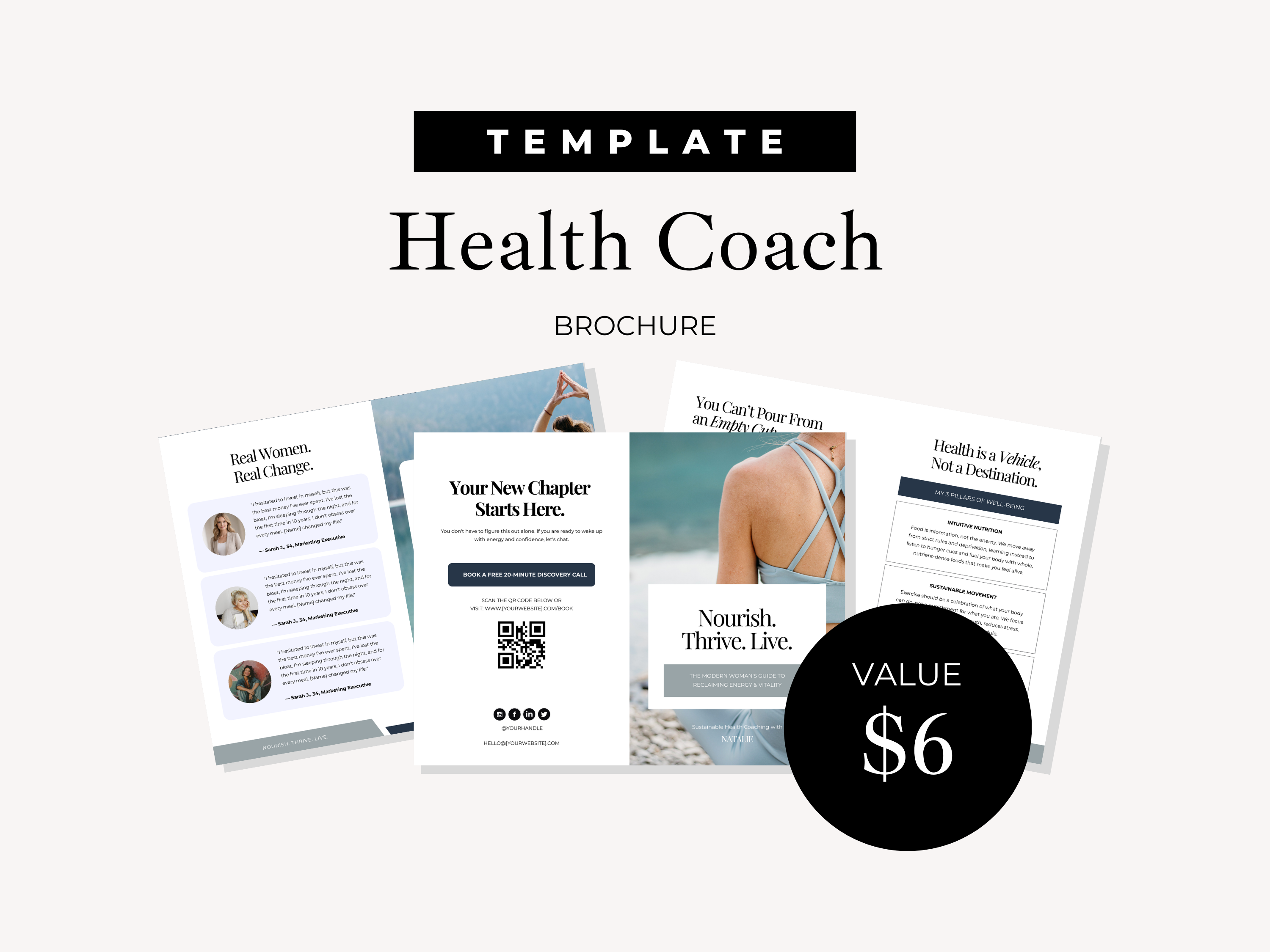 Perfect For Health coaches, wellness coaches, nutrition coaches, holistic health practitioners, and women’s wellness brands who want a professional marketing piece for: