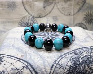 Handmade 10mm Turquoise And Black Onyx Gemstone Stretch Brace...