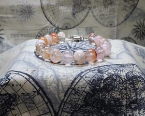 Handmade 10MM Natural Cherry Blossom Agate Translucent Pink O...
