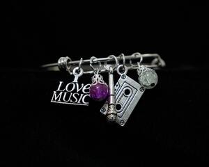 Music Lovers Charms Stainless Steel Adjustable Bangle Bracelet