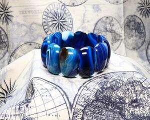Handmade Natural Blue Agate Stone Gemstone Stretch Bracelet