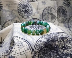 Handmade 8 mm Green Agate Gemstone Stretch Bracelet Size 7.5