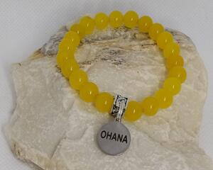 Handmade 8 mm Yellow Agate Gemstone Ohana Charm Stretch Brace...