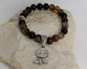 Handmade 8 mm Brown Agate Gemstone Girl Charm Stretch Bracele...