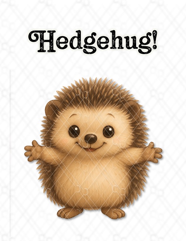 Need to send love, warmth, or an emotional sucker-punch of cuteness? This chubby little hedgehog has its arms wide open and is ready to deliver a hedgehug—because let’s be honest, porcupines can’t hug and sloths are too slow.