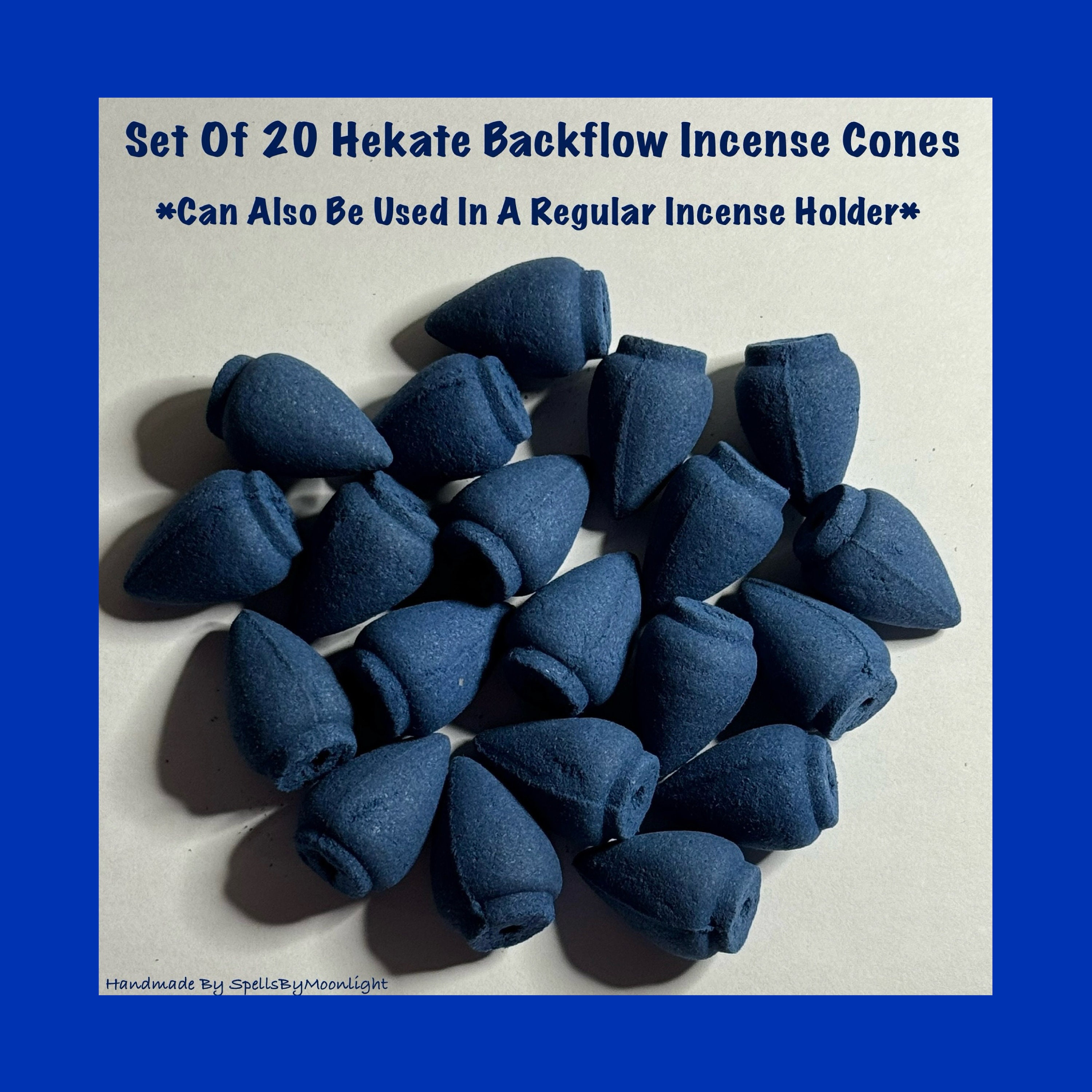 This is a Listing for 20 Hekate Backflow Incense Cones. They can be used in a regular Incense Holder too, but they will burn a little faster and you wont get the backflow effect! Use these Incense Cones to honor The Goddess Hekate/Hecate. You can use them to invoke Hekate for her help with spells. They can be used as an offering for Hekate as well. ✨Listing is for one pack of 20 Incense Cones ✨Never leave Incense burning unattended! ✨Once your order is placed I do not accept cancelations or returns. If you have an issue with your order, contact me so I can resolve it ASAP.