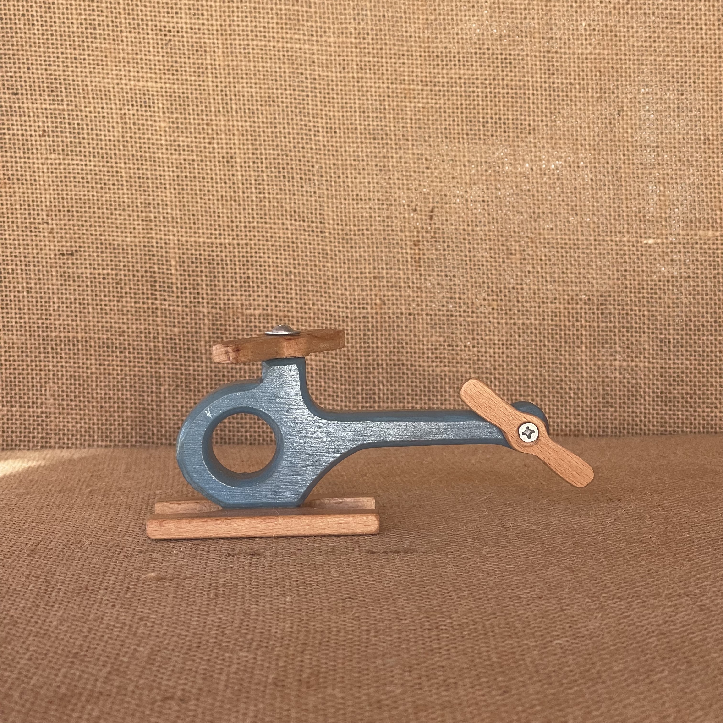 helicopter is made out of beech wood and hand paint on diferent colors let us us know color