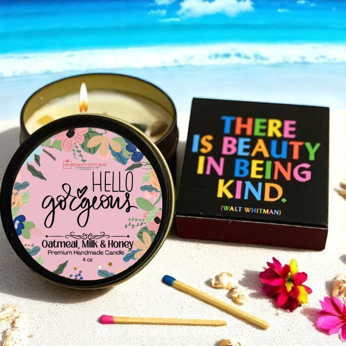 Hello Gorgeous Scented Handmade Candle & Matches Gift Set features a beautifully crafted 4 oz candle with a delightful fragrance that creates a cozy ambiance. Paired with stylish matches, this set makes a perfect gift for any occasion.