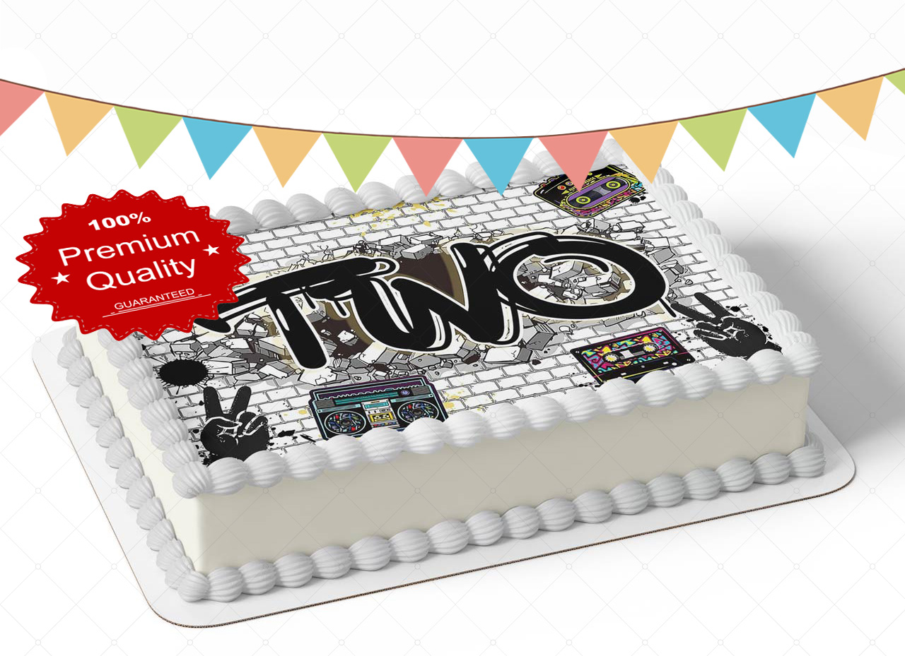 Hip Hop Rap Trap Music Old School Graffiti Brick Wall Two Edible Image Themed Edible Birthday Party Cake Topper Sheet Edible Sticker Decal