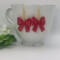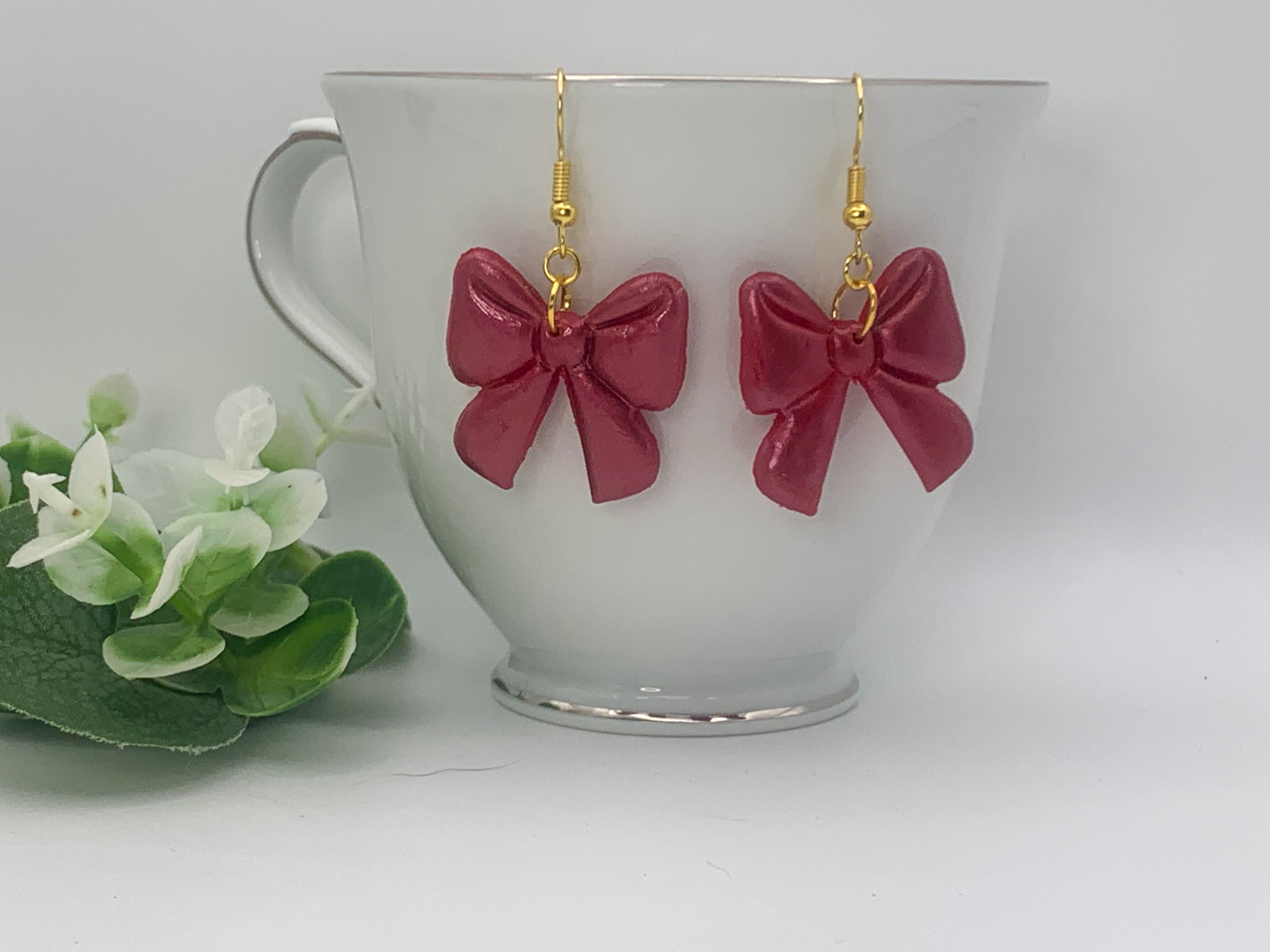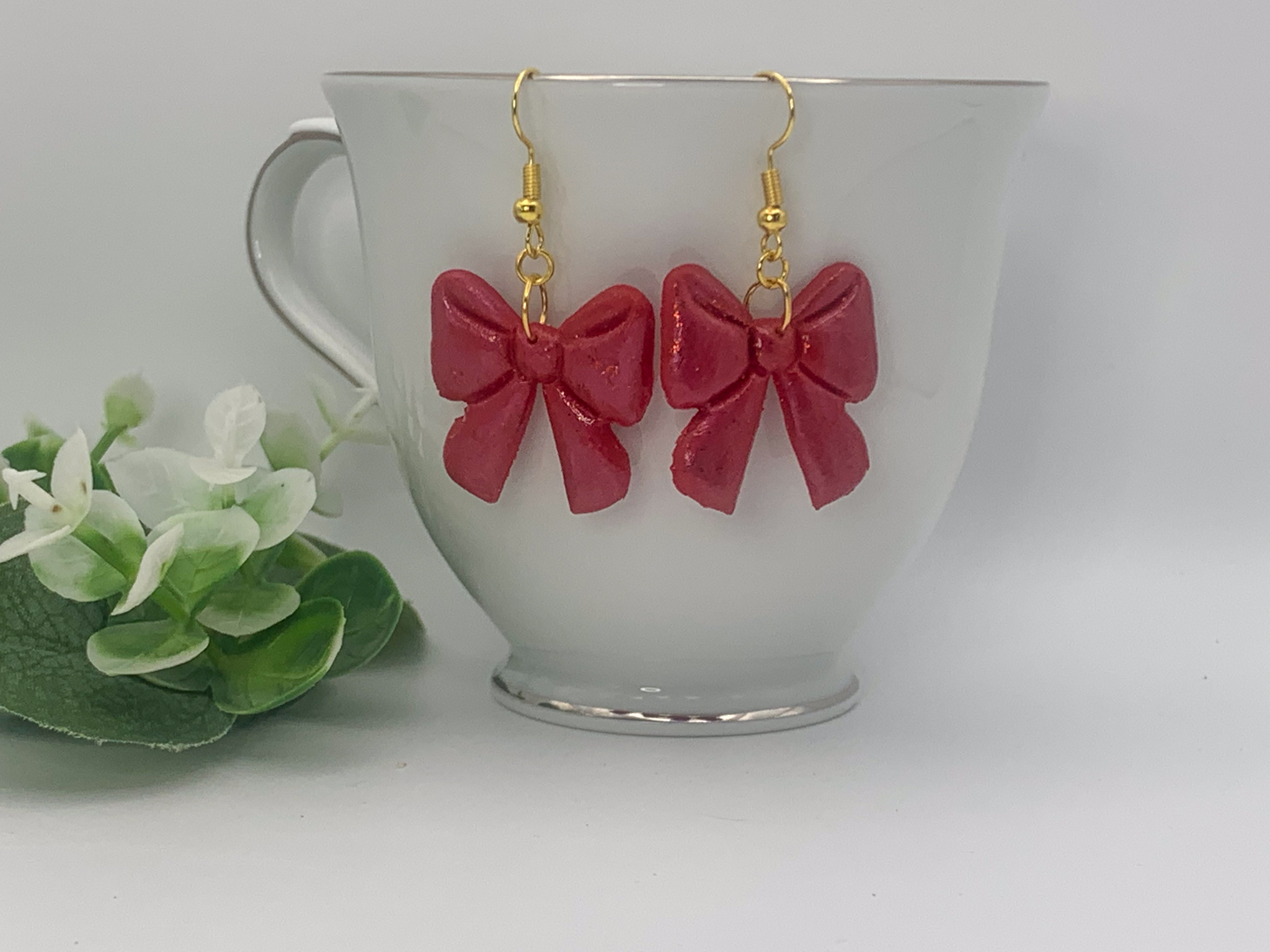 Add a festive finishing touch with these elegant red bow earrings! Glossy and handmade, they’re the perfect way to tie your holiday look together.