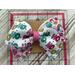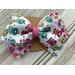 Add a festive touch to your holiday look with this handcrafted hair bow! Measuring approximately 5 1/2 inches wide, this bow is made from premium neoprene fabric and features a cheerful "HoHoHo" rainbow design with winter-inspired patterns in white, pink, and green tones.