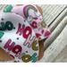 Each bow is lovingly handcrafted in my home-based studio using premium neoprene fabric. The fabric is carefully chosen for its durability and vibrant colors, featuring a cheerful "HoHoHo" rainbow design with winter-inspired patterns in white, pink, and green tones.