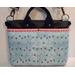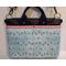 Made in a foam-lined, festive cotton print and navy blue vinyl accents
