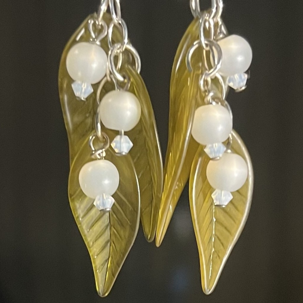 These earrings are made with vintage Lucite leaves and berries. The metal chain and ear wires are sterling silver