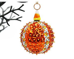 Candy Corn Topped Metallic Sequin Halloween Tree Ornament