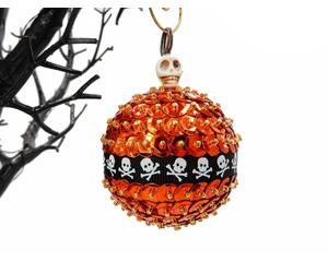 Halloween Ornament. Skull Topped Orange & Black Sequins. Spoo...