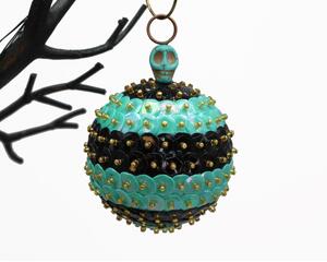 Halloween Ornament. Teal Skull with Black and Teal Sequins. ...