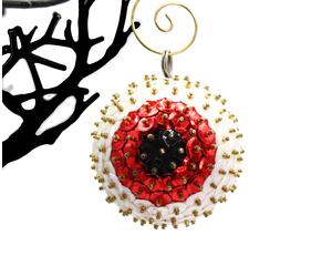Sequin Christmas Ornament. Golden Green & Red Swirled Sequins...