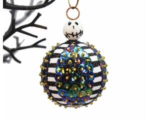 Black & White Sequin Macabre Skull Topped Halloween Ornament....