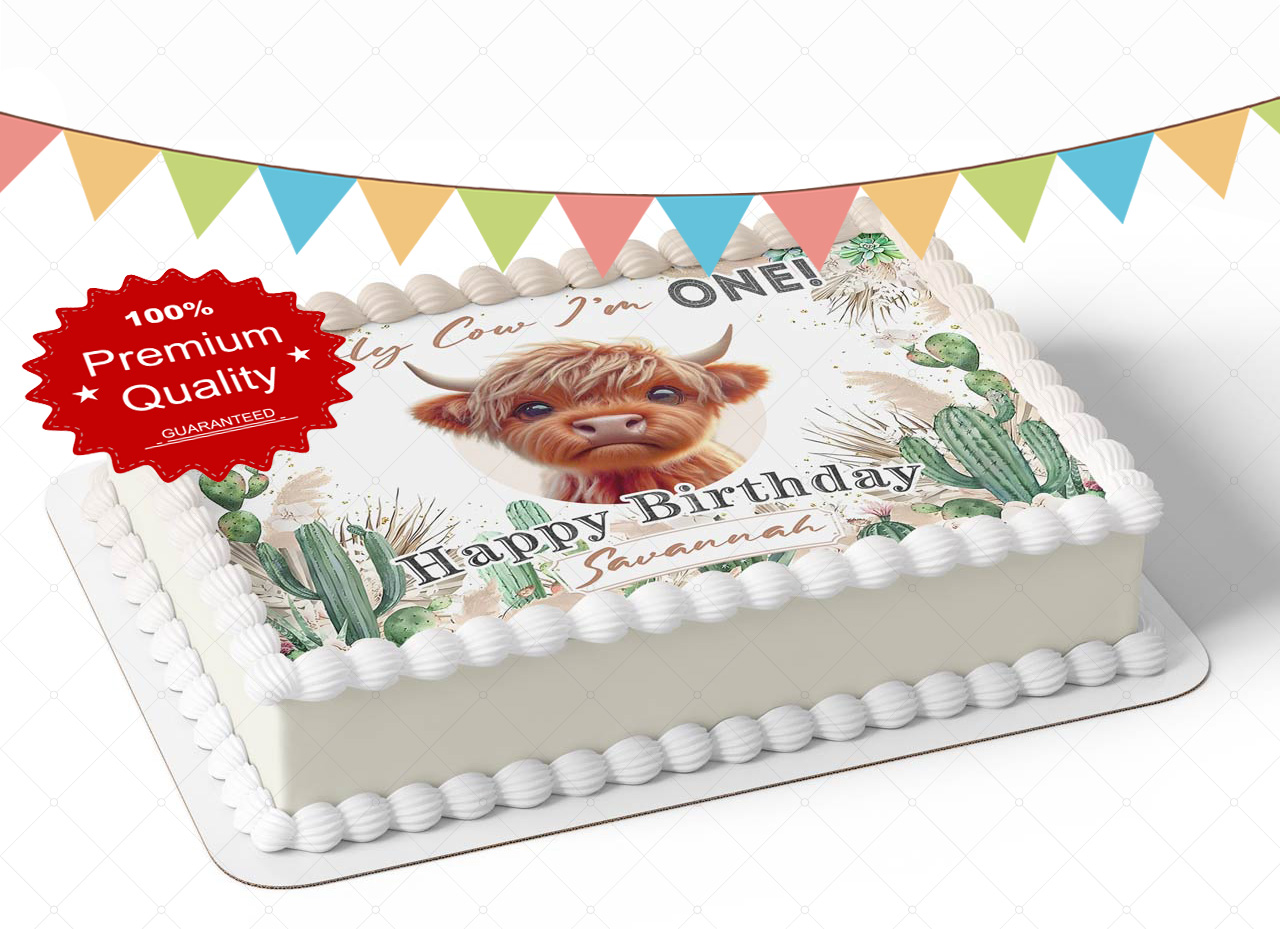 Holy Cow Im One Baby Highland Cow Edible Image Themed Edible Birthday Party Cake Topper Sheet Edible Sticker Decal