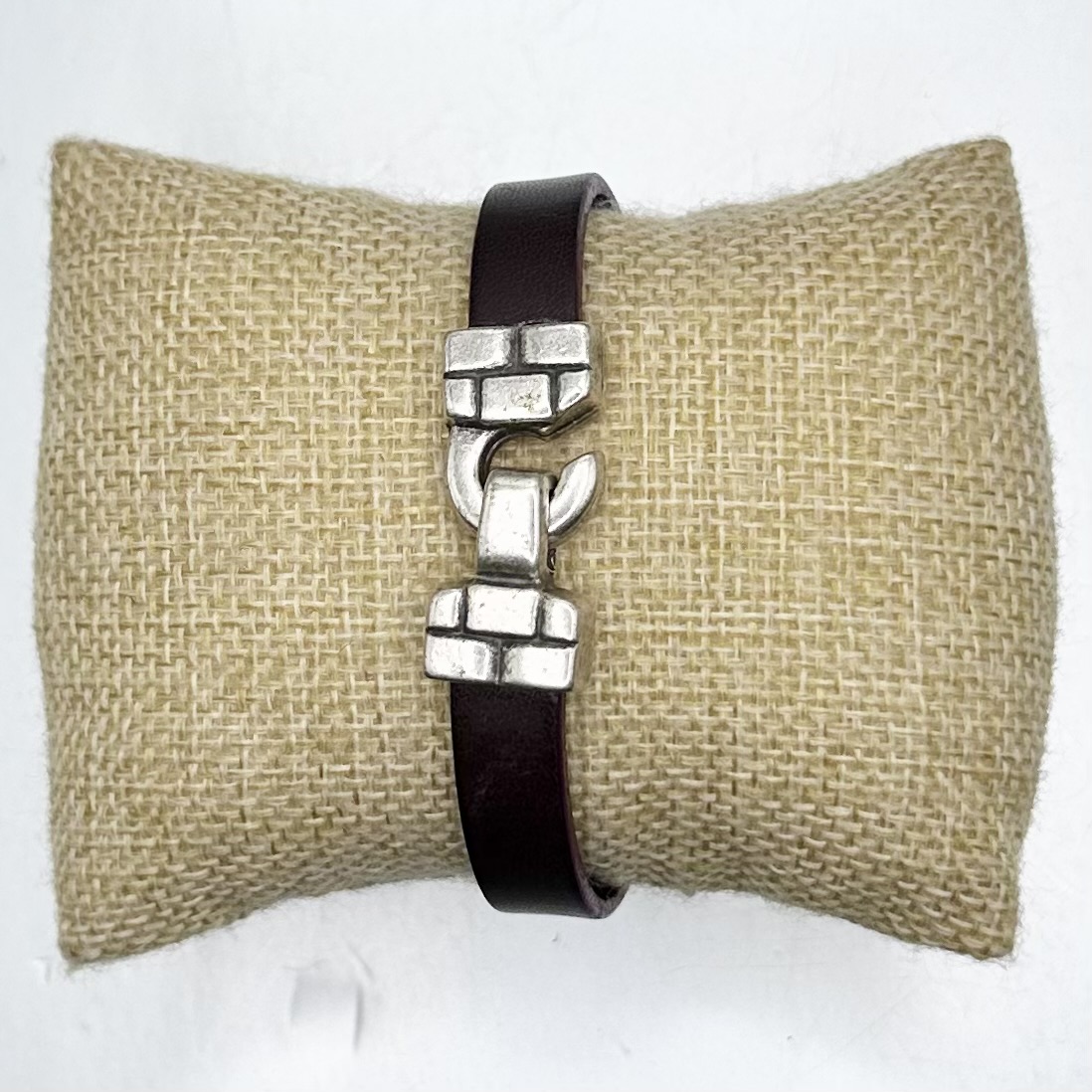 Hooked on Style: Bold Dark Red-Brown Leather Bracelet with Industrial-Chic Clasp