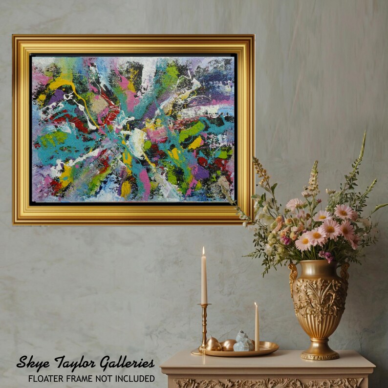 "Hope Rising" is a breathtaking original acrylic abstract painting by the exceptional artist Skye Taylor, designed to captivate and elevate any luxury collection. Dominated by a rich turquoise hue, the painting is brought to life with free-spirited splashes of purple, yellow, red, and blue-green—each stroke exuding energy and vitality. This masterpiece draws the viewer into a serene journey of calmness, as though lying in a peaceful flower garden, with each intricate detail inviting endless exploration. Created in just two days, the piece showcases Skye Taylor’s unparalleled skill and creativity. As a one-of-a-kind artwork, "Hope Rising" is a rare treasure, impossible to replicate and destined to appreciate in value over time. Its exclusivity, combined with its mesmerizing beauty, makes it an extraordinary investment—an emblem of luxury and sophistication that will undeniably enrich your collection and bring a sense of tranquility into any space.