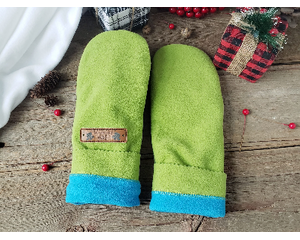Teen, Small Woman Green Mittens | Handmade Double Layered Coz...