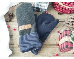 Teen, Small Woman Fleece Mittens | Handmade Fluffy Gray Doubl...