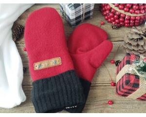 Wool Baby Mitten | Red Double Layered Mitt Fleece Lining | Ha...