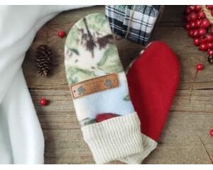 Kid's Ages 8 to 10 Red Black Wool Mittens with Cozy Fleece Li...
