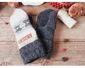 Men’s Regular Wool Red & Black Mittens | Reg Size Brown Mitte...