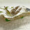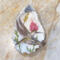 The hand selected Pacific oyster shell gets ground down on the back to make it sit properly on four green glass pebble feet, the hinge is touched up with black, brown and gray paint. After applying the decoupage hummingbird art, the the shell is sealed with several layers of high gloss resin which enhances the shell's colorful nacre interior and protects the decoupage. Dimensions: 5.25 x 3.5 x 1.5 inches