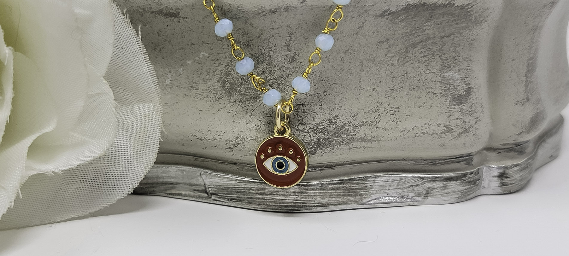 Icy Blue Hydro Quartz & Red Enamel Evil Eye Necklace