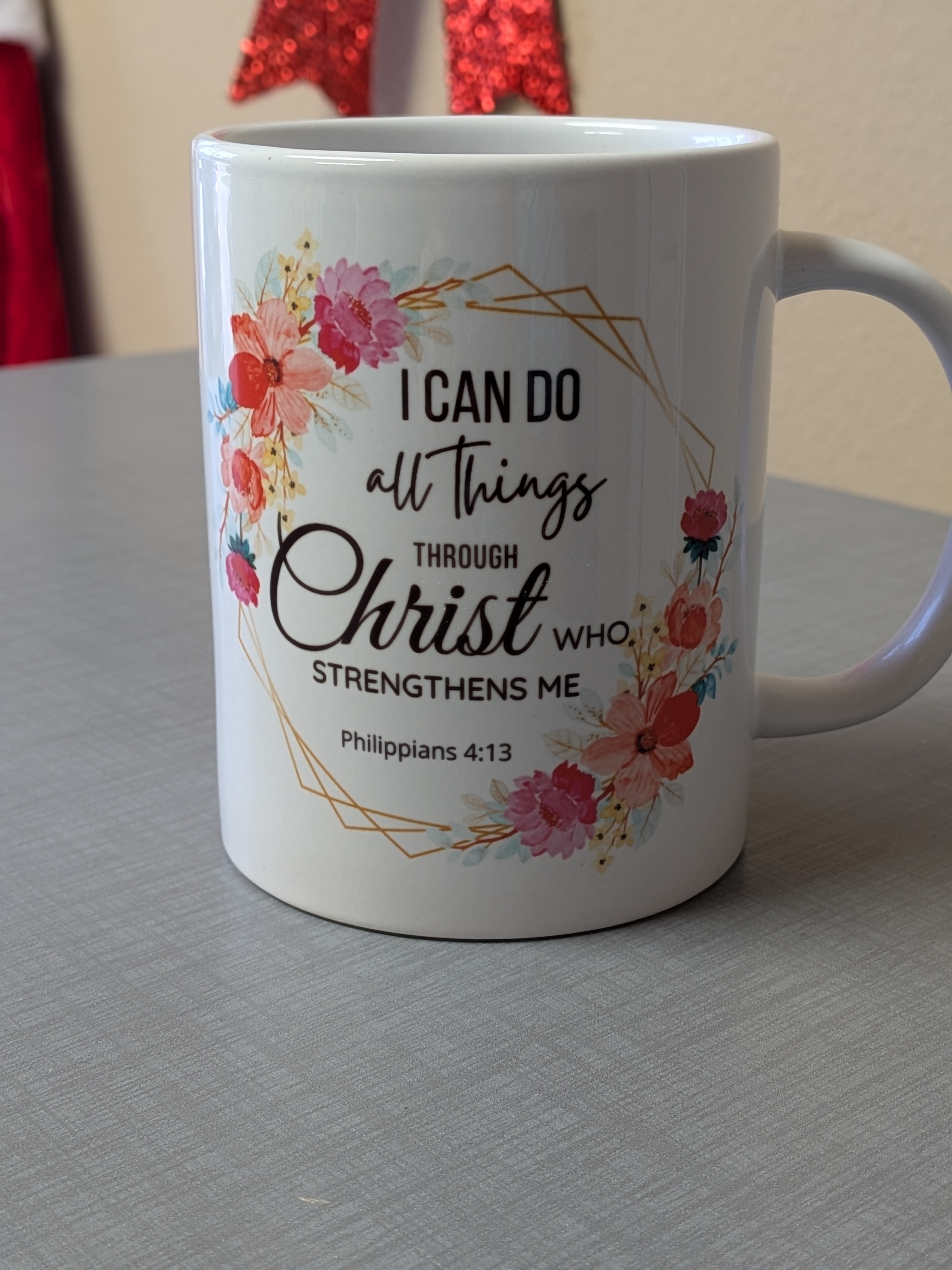 Embrace daily inspiration with our Bible verse mug featuring the empowering message Philippians 4:13 "I can do all things through Christ who strengthens me mug."This Christian mug is perfect for starting your day with faith and encouraging inspiration.