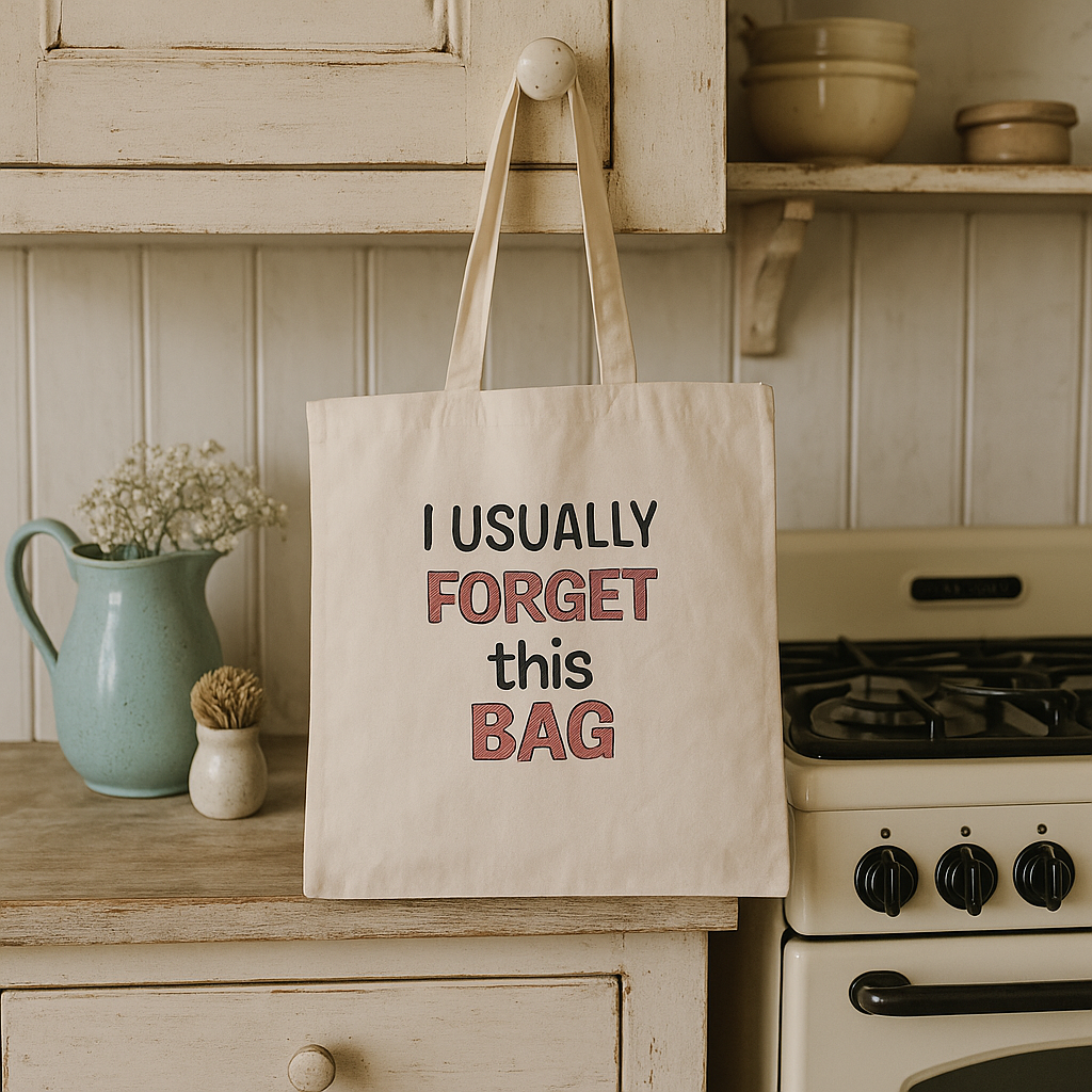 Made from durable canvas with a crisp embroidered design, it’s a fun way to remember (or forget!) your reusable bag in style. Great as a gift for eco-friendly friends, market lovers, or anyone who laughs at themselves.