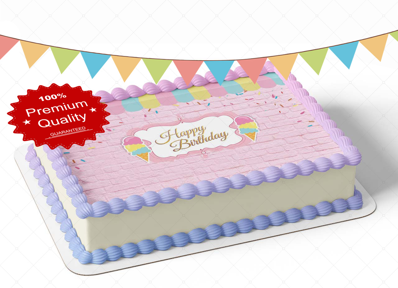 Ice Cream Candy Pink Girls ICC Edible Image Themed Edible Birthday Party Cake Topper Sheet Edible Sticker Decal