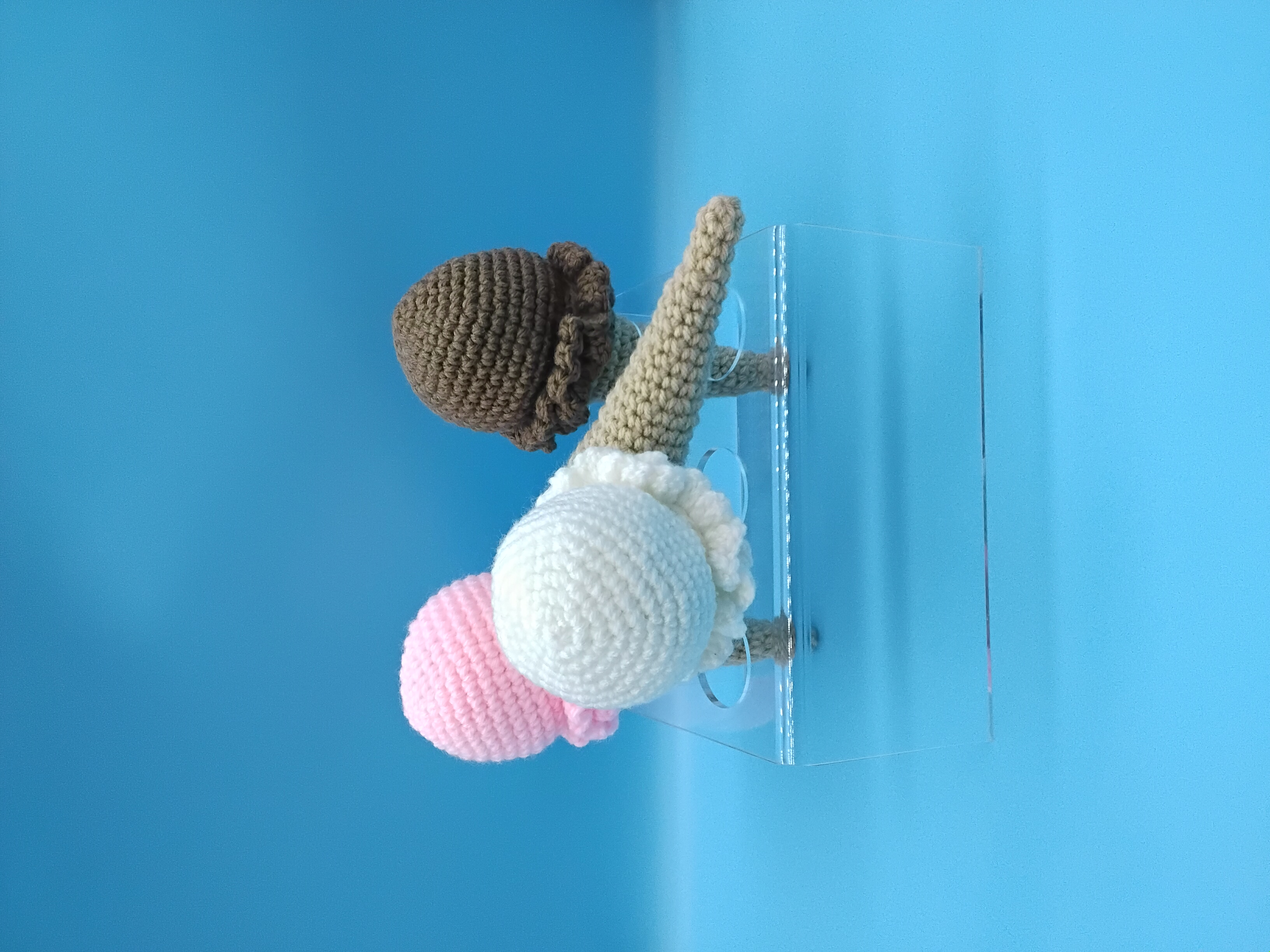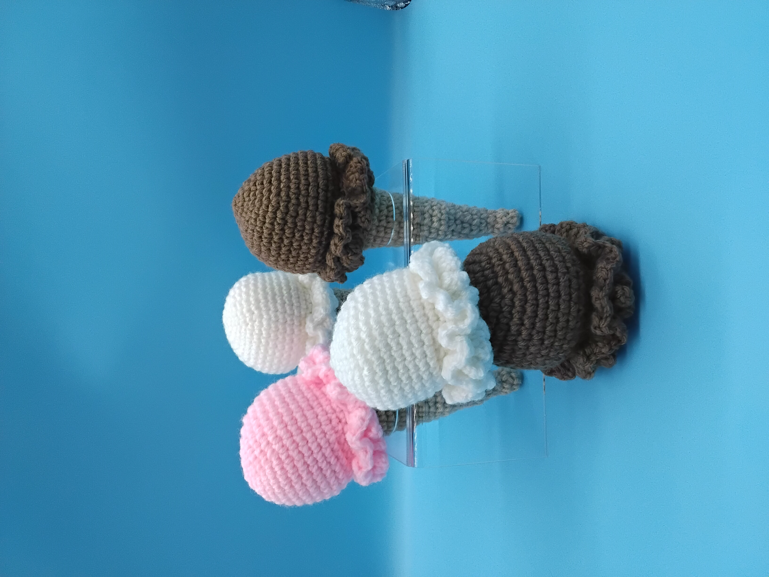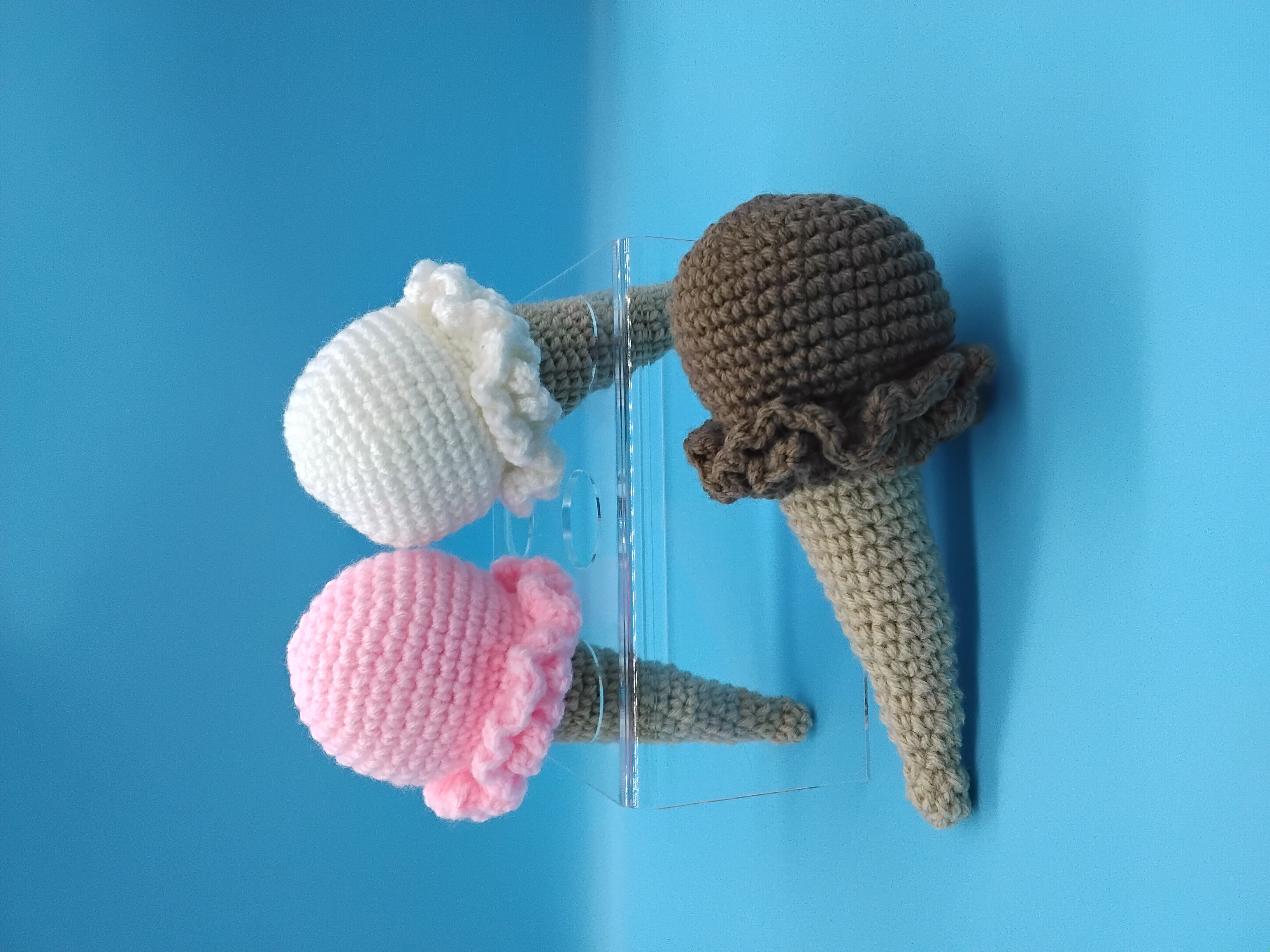 Made with soft acrylic yarn and filled with fluffy polyfil, these cones are lightweight, squeezable, and perfect for pretend play, desk decor, or gifting. The swirled stitching mimics real ice cream, while the ruffled scoop edges add a whimsical touch. The interactive design lets you pop the scoop on and off with ease—mix, match, and collect your favorite flavors to build your dream dessert lineup!