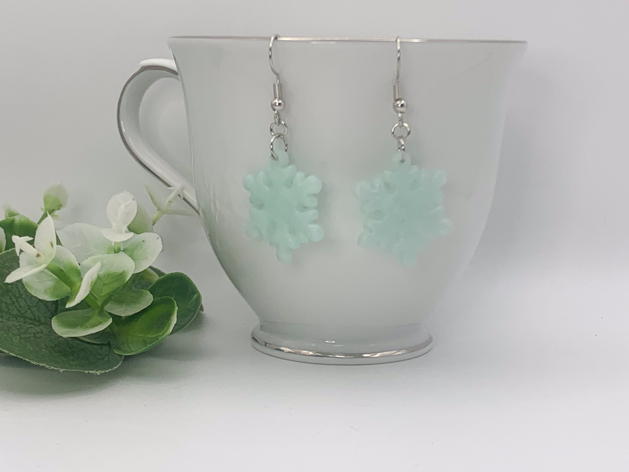 Celebrate the season with these icy blue snowflake earrings! Their cool tone and delicate design make them perfect for winter festivities.