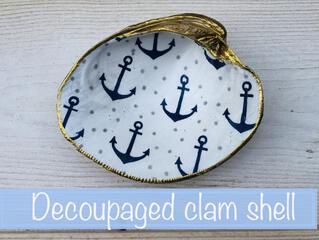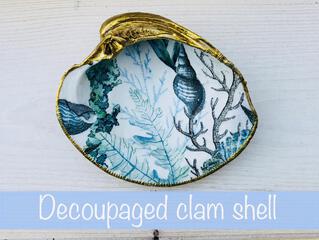 Marine Themed Decoupaged Clam Shell Ring Dish or Trinket Dish...