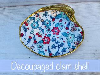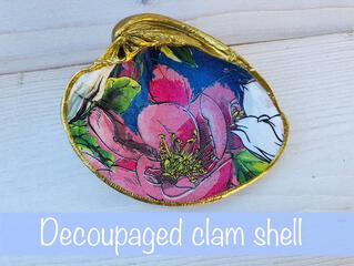 Handcrafted Decoupaged Clam Shell Ring or Trinket Dish with D...