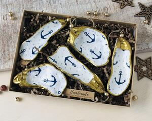 Handmade Oyster Shell Christmas Ornaments Set – Ocean Blue & ...