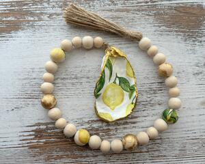 Lemon-Themed Beaded Garland with Decoupaged Oyster Shell