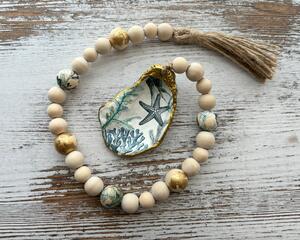 Ocean-Themed Beaded Garland with Decoupaged Oyster Shell