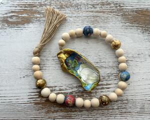 Oleander Floral Beaded Garland with Decoupaged Oyster Shell